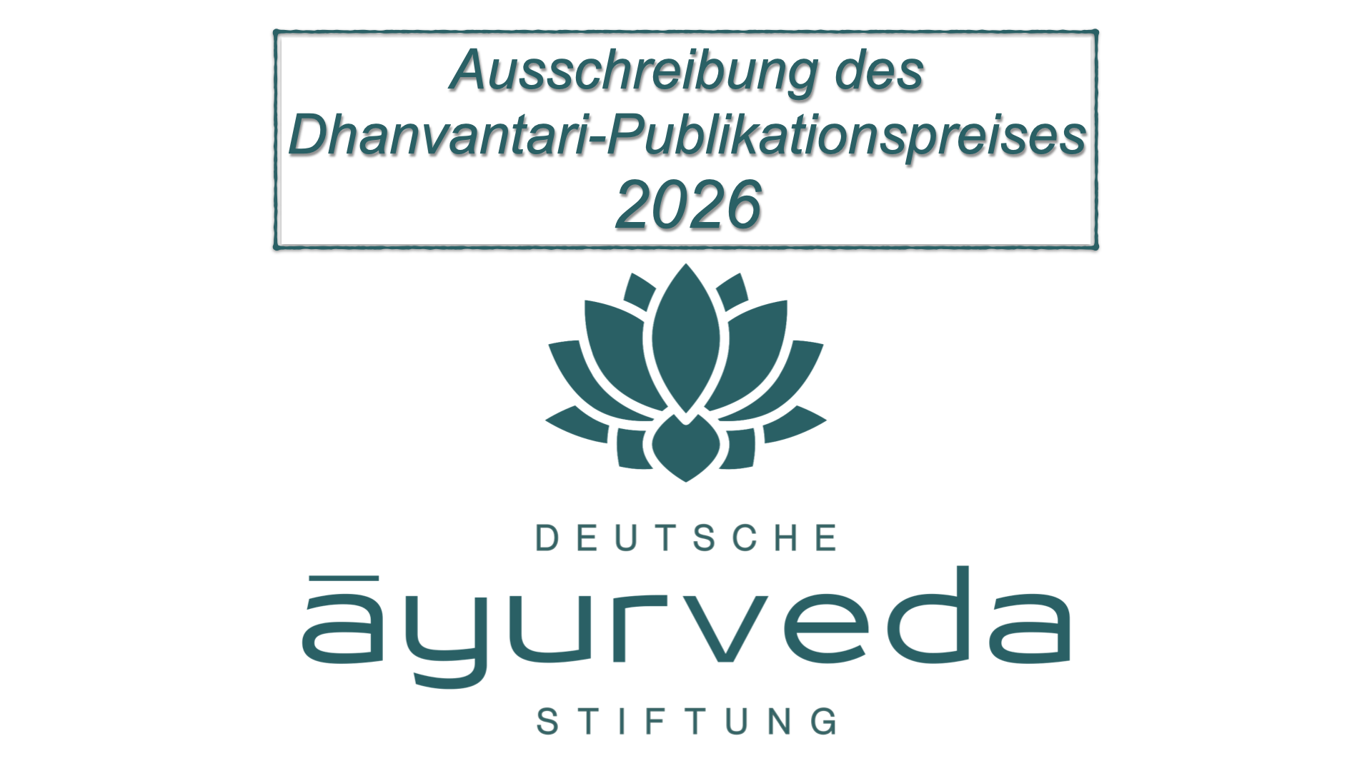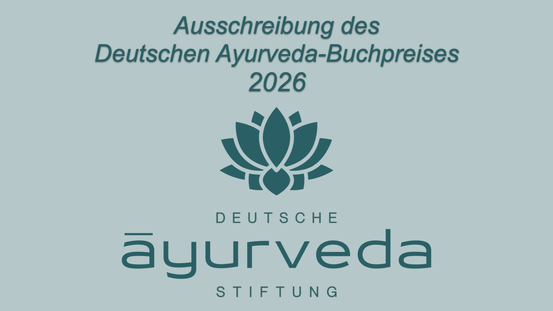 Ein starkes Zeichen für die Zukunft des Ayurveda in Deutschand: Wir feiern Engagement & Exzellenz mit unserer Preisverleihung 2025 Liebe Freundinnen und Freunde der Deutschen Ayurveda-Stiftung,liebe Unterstützer*innen, Partner*innen und Wegbegleiter*innen, mit großer Freude und Zuversicht möchten wir Sie herzlich zur Online-Preisvergabe am 10. Dezember 2025 einladen. Die Deutsche Ayurveda-Stiftung verleiht in diesem Jahr gleich zwei Preise, die das wachsende Engagement … Continued